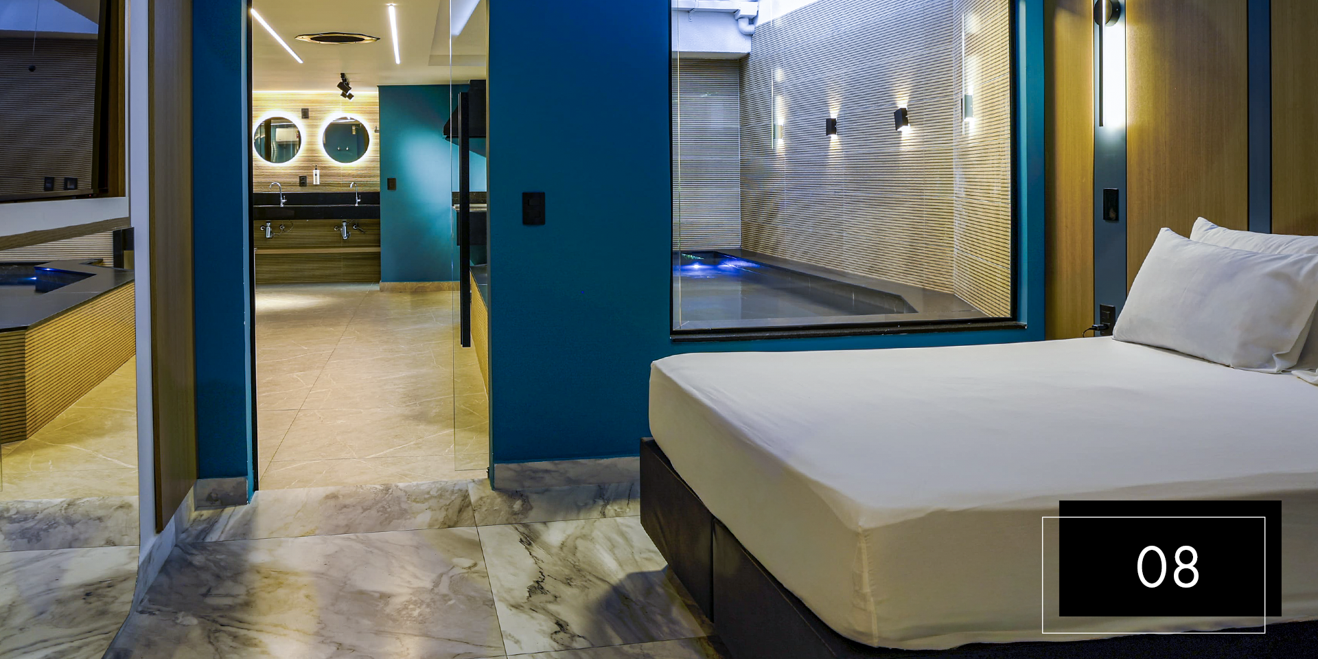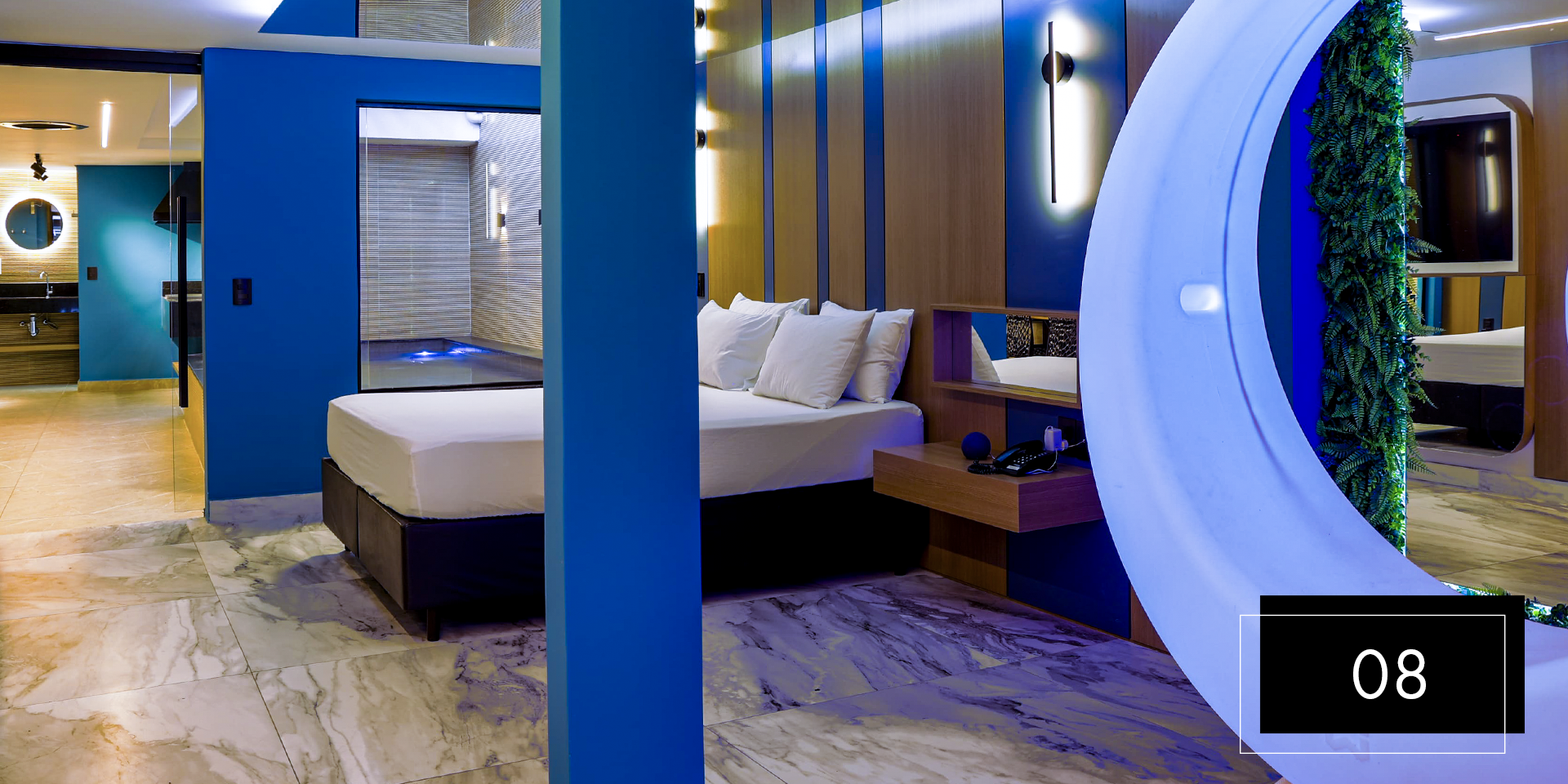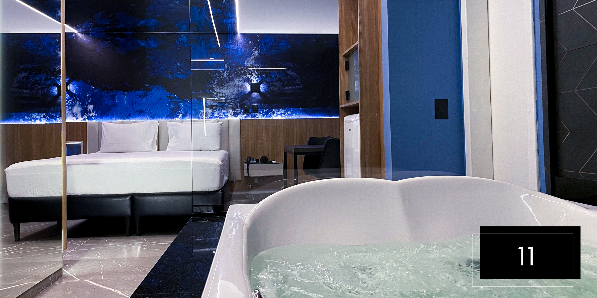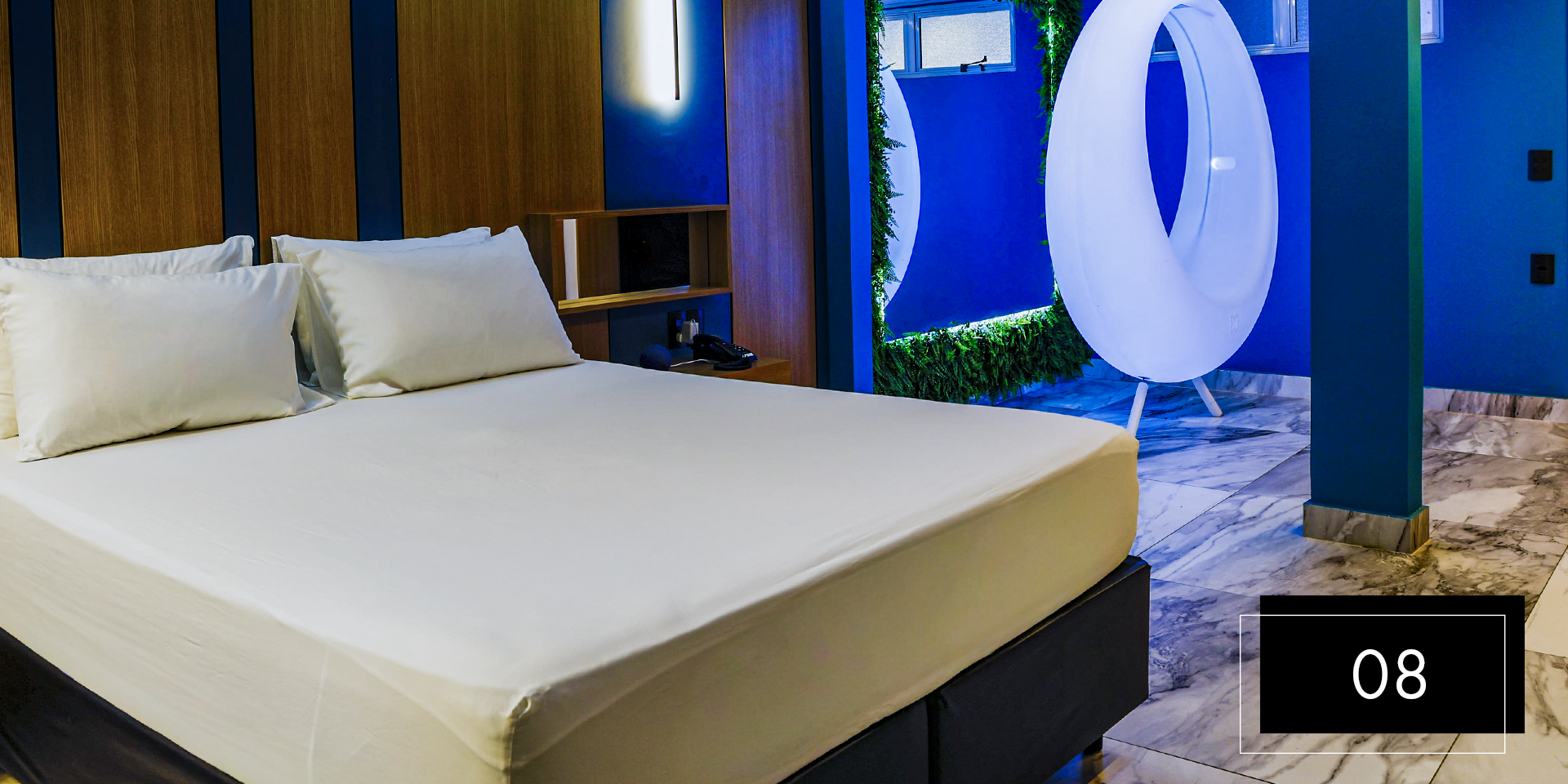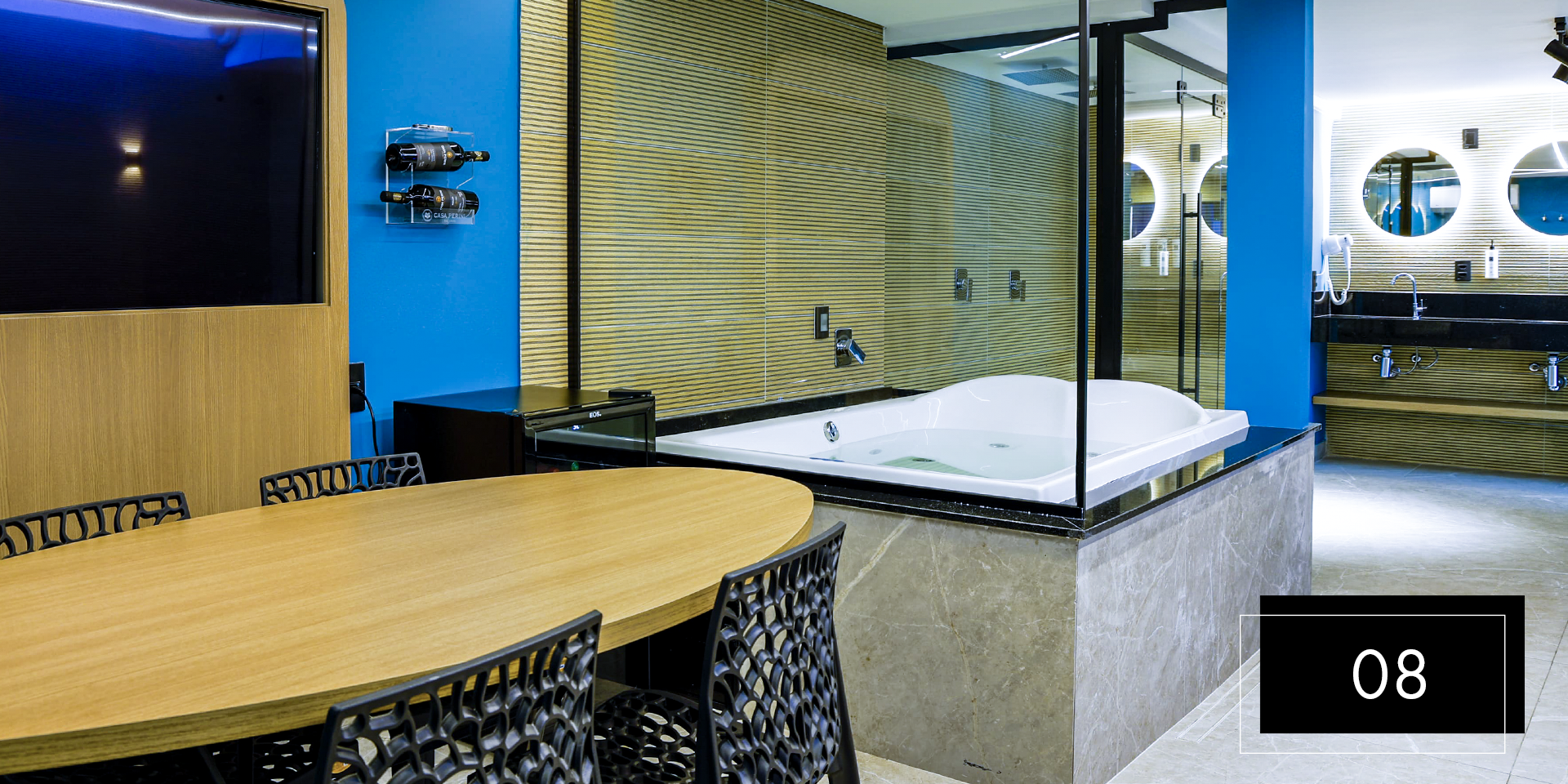 Espaço e comodidade estão ao seu dispor com as suítes Club Pool 08 e 11. Perfeitas para comemorações intimistas. Aproveite o design moderno e exclusivo dessas suítes, que possuem hidromassagem, espaço gourmet com churrasqueira, ainda, te proporcionam apreciar o céu da piscina aquecida através do teto retrátil. A nova Suíte 08 inclui ainda um balanço de led para aquele registro romântico do casal. A Suíte 11 possui sauna.